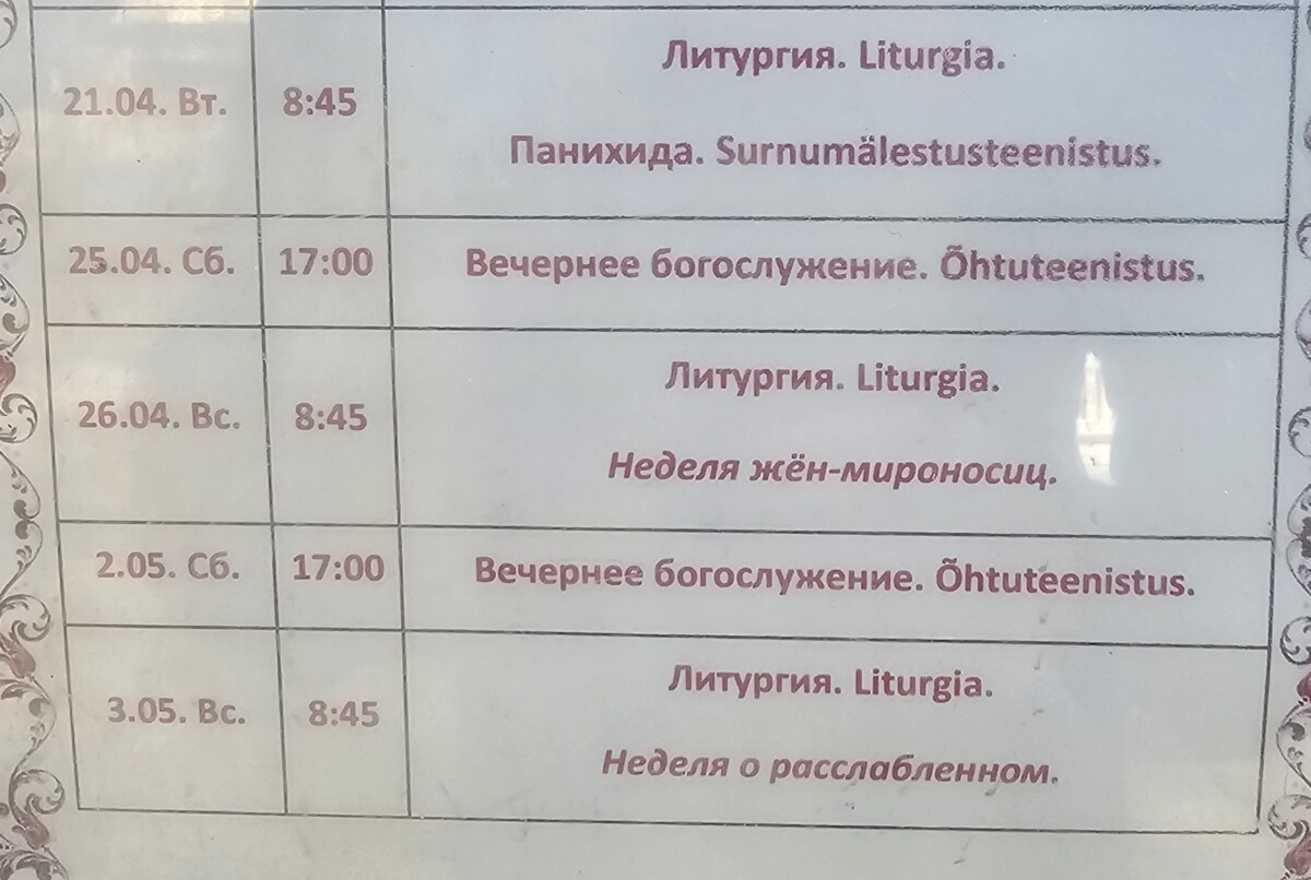 Расписание богослужений